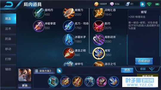 抵抗之靴、宗师之力、无尽战刃、破甲弓、暴烈之甲、破军
