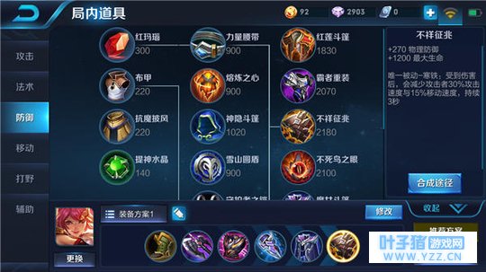 魔女斗篷不仅增加了法术防御,最大生命,被动-迷雾为花木兰提供一个吸收法术伤害的护盾,并且每次脱战一定时间后重新补充护盾,很好的抵御了敌方的法师英雄。不祥征兆提供了物理防御与最大生命,被动-寒铁更是能很好的限制敌方的输出。