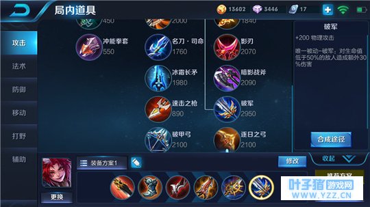 六神装:追击刀锋,急速战靴,泣血之刃,无尽战刃,宗师之力,破军