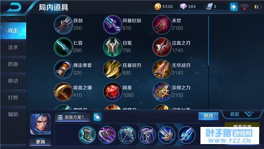 六神装:抵抗之靴、暗影战斧、破甲弓、魔女斗篷、破军、名刀·司命