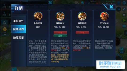 解析:程咬金对附近范围内的敌人造成两段伤害,此技能作为程咬金的主要输出技能,用于清理兵线是非常不错的,而在追击敌人时搭配普通攻击也能起到一个很好的输出效果。