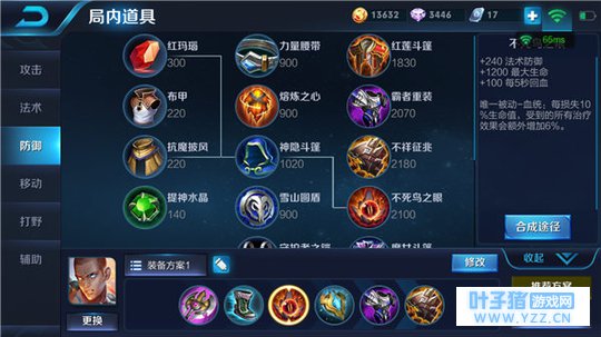 六神装:巨人之握,抵抗之靴,不死鸟之眼,极寒风暴,霸者重装,不祥征兆
