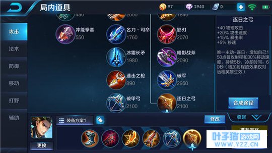 分析:到了后期,物理穿透是非常重要的,不管是面对敌方战士还是突进英雄,都能造成更好的输出效果。破甲弓增加物理攻击,冷却缩减的同时,被动更是能带来大量的物理穿透。逐日之弓,增加物理攻击,攻击速度,暴击率和移动速度的同时,主动-逐日更是能让狄仁杰在瞬间获得射程和移速的加成,在团战时可以更好的进行输出。