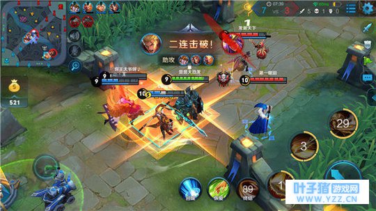 亚瑟前期对线抗压能力较强,可利用二技能搭配一技能的突进效果近身骚扰,由于前期输出普遍较低,双方掉血相对平稳,但亚瑟借助回血速度优势,可以迅速拉升血线,血量优势逐渐明显。