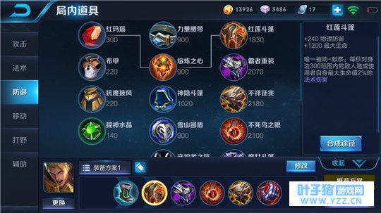 六神装:抵抗之靴,红莲斗篷,霸者重装,不死鸟之眼,不祥征兆,血魔之怒