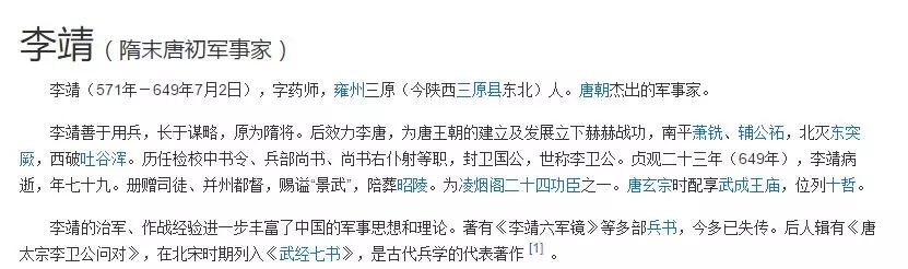 李靖(571年-649年7月2日),字药师,雍州三原(今陕西三原县东北)人。唐朝杰出的军事家。
