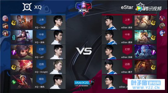 红色方eStar:上单老夫子+中单虞姬+打野诸葛亮+边路苏烈+辅助姜子牙