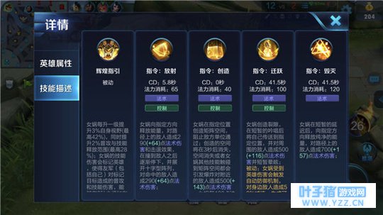 被动技能——辉煌指引:被动技能让女娲在后期拥有更远的视野和攻击距离,标记效果增加队友的机动性和存活能力。