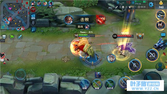 中期:团战时一定要冲在前面,技能可以放进防御塔内,将塔下敌人击杀,有利于我方推塔。