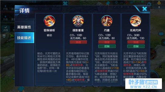 被动技能——密探谛听:被动技能提高了李元芳的战场存活能力,在追击敌人时也能够及时洞悉敌人的位置,增加战场击杀。