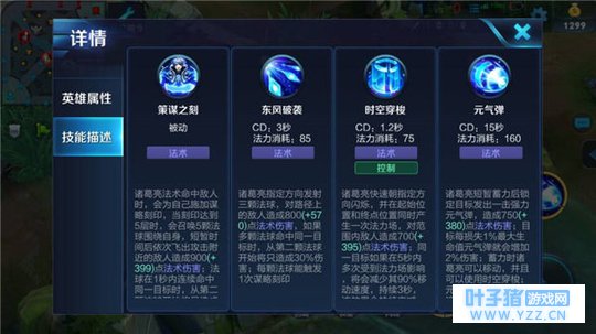 诸葛亮的技能命中敌人时,为自己叠加谋略刻印,当叠加5层时会召唤五颗法球围绕自身,对身边目标连续打击,造成法术伤害。诸葛亮的被动是他打出高伤害的重要保证,所以要利用技能快速叠加被动,在团战时也可以利用野怪或小兵快速叠加再入团,使伤害最大化。
