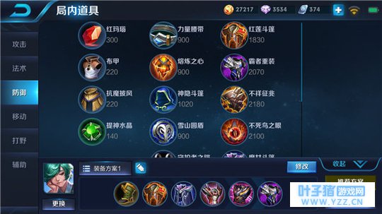 六神装:影忍之足、红莲斗篷、魔女斗篷、反伤刺甲、暴烈之甲、霸者重装