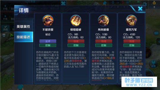 苏烈的被动,让他能够为队友吸收大量的战场伤害,而主动技能都带控制的机制,让他也成为了能够一直把人控到死的硬汉。下面就技能和出装,为大家介绍苏烈。