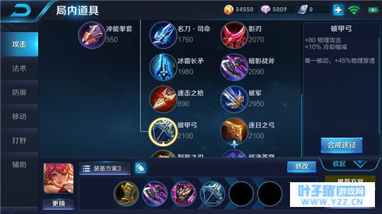 破甲弓增加的物理攻击让花木兰的输出能力有着明显的提高,而且破甲弓还可以减少自身技能的冷却时间,被动效果可以赋予花木兰一定百分比的物理穿透效果,让花木兰及时与敌方坦克英雄作战,也可以给予敌人大量的伤害。