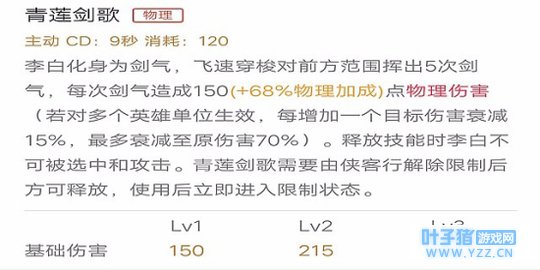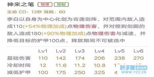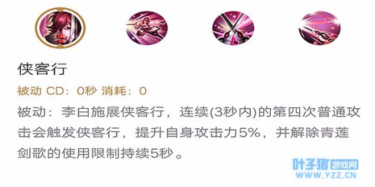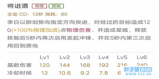 技能介绍:此技能帮助李白在前期打野时拥有更高的伤害,能帮助李白快速清理野怪,并且在四级后可以解锁大招,使用大招的同时也能得到攻击加成,提高自身的物理输出。