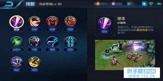 技能介绍:利用被动技能解锁大招后才可使用大招,利用大招的五次高额伤害能在前期对敌方线上英雄的发育造成干扰,先在野怪身上解锁大招,利用一技能位移到敌方身边使用大招进行攻击,再使用一技能回到原地,这样可以极大程度的限制敌方线上英雄的发育。