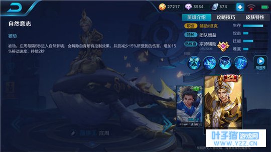 解析:庄周每隔一段时间自动触发,不但解除控制,还能增加移速和伤害免疫。该技能是庄周压制流打法的关键,因为他的触发频率高,而且持续时间长,在战场上即便是多个敌人也没有将其单抓致死的可能;而且在团战中,庄周也可以依靠这个特点吸收敌军的伤害和控制技能,让他对团队的增益更加明显。