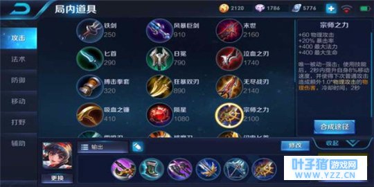 暗影战斧:增加了物理攻击、冷却缩减和生命值,增加了物理穿透,装备被动是普通攻击有30%几率降低敌人20%移动速度,持续2秒,这件装备配合百穿铭文,能够将自身伤害最大化。