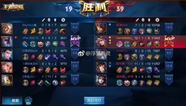 同一局对战,不同玩家竟然看到的评分和mvp居然是不一样的!