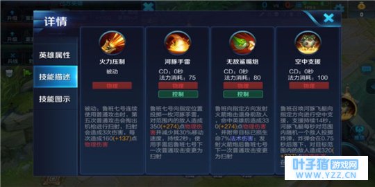鲁班七号召唤河豚飞艇,河豚飞艇每秒对范围内随机一个敌人投掷炸弹,炸弹在0.75秒后落下,对小范围敌人造成高额物理伤害,并使得鲁班七号的下一次普攻变更为扫射。