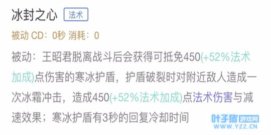 整体分析:寒冰护盾会为王昭君抵免一定的伤害,间接的提高了王昭君的生存能力。并且在护盾破碎时还会对附近的敌人造成法术伤害与减速效果,可以拖延敌方英雄进攻的节奏,在团战中的作用不可忽略。