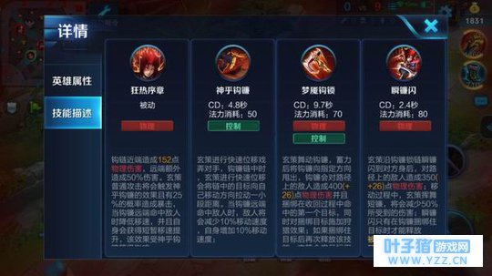 梦魇钩锁:百里玄策的二技能,使用后蓄力向指定方向甩出钩镰,被命中的敌人将受到物理伤害,并且捆绑目标施加狩猎效果。再次激活该技能会将目标甩向身后。在蓄力时将提升一定的移速,取消蓄力将返还冷却时间,若狩猎目标死亡将刷新该技能的冷却时间。该技能是百里玄策的强势控制技能,虽然不是硬控,但是能够有效地牵制敌人。
