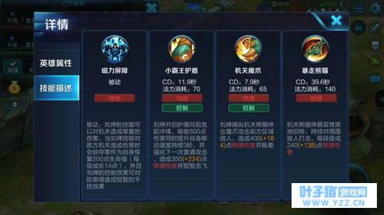 磁力屏障:被动让刘禅的技能对防御塔、水晶也有等量的伤害和控制效果,同时还能掠夺零件为自身回复一定的生命值,非常适合越塔强杀。