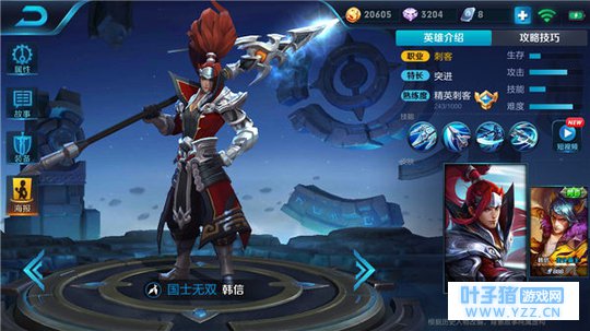 打野韩信:韩信是一名非常灵活的刺客英雄,自身的机动性非常强,在前中期,利用韩信自身的位移技能和控制技能多多gank,这样就能大大减轻队友的对线压力,也能逐渐拉大敌我双方的经济差距。