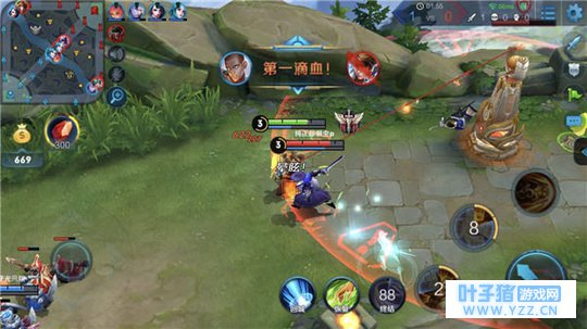 达摩在与敌人的作战中,若是发现敌人正在防御塔下,而达摩和队友很难借助兵线接近防御塔时,达摩可以立即释放一技能来到敌人的面前,同时将敌人击飞,并利用自己的大招将敌人往队友的方向击退,将敌人击退出防御塔的保护范围,而后达摩可以迅速脱离防御塔的攻击范围,并与队友一起攻击敌人,可以在短时间内将敌人迅速的击杀。