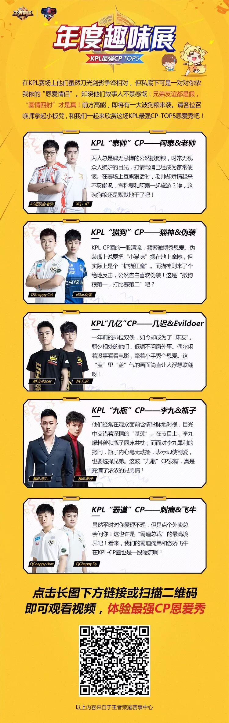 英雄们处CP可谓是一锅大乱炖呐!而 KPL选手们 也是毫不逊色哦~ 妲己宝宝这就带大家欣赏KPL最强CP·TOP5的年度恩爱大戏吧(简称:吃狗粮)!
