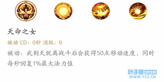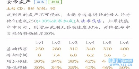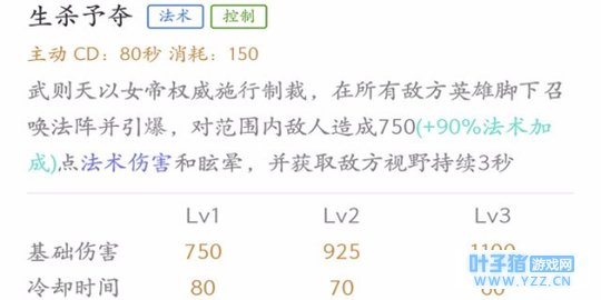 武则天的一技能为主要输出技能,主点能将其输出最大化,二技能伤害不如控制有用且一般作为自保时使用,副点即可。