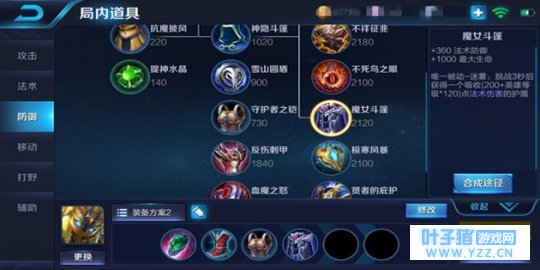 最后两件可以选择霸者和贤者的庇护,当然如果团战中实在扛不住伤害,可以选择不祥征兆增加坦度,顺风还是推荐霸者的。