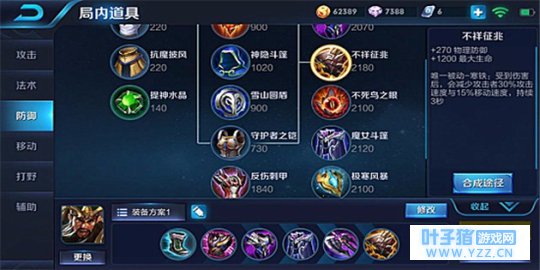 魔女斗篷加强法术防御,中期法师英雄伤害都已成型,该装备的被动护盾可以抵挡法术伤害,使得关羽能更好地对付法师英雄。