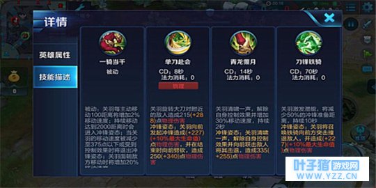 关羽是一个操作要求高,可玩性高的强力英雄,多加练习与摸索,你的青龙偃月将能杀敌万千,你的赤兔马终会驰骋天下。加油吧,少年。