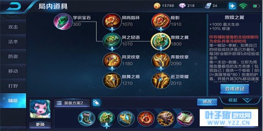 救赎之翼可以增加1000生命和10%移速,它的主动技能可以给身边最少血量的队友套盾,再加上蔡文姬携带的治疗术和她自己本身的加血技能,保护能力会十分强大。对方刺客不敢轻易来切我们c位,如果刺客来切却不能秒掉射手,没有技能的刺客就不足为惧了,这时就可以配合队友反打一波。蔡文姬作为一个辅助一般经济都很低,而救赎之翼就可以为她弥补经济。