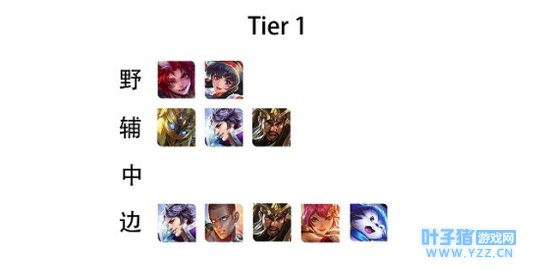 按理说评级是没有T0的,而且这个版本也没有什么一枝独秀的英雄,我们从T1开始(排名有先后,供参考)。以下三个梯队的英雄都是经常上场且在高端使用者手中有着优异表现的。