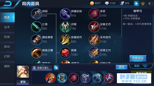 破甲弓不仅有物理攻击和冷却缩减,尤其是高额的物理穿透可以让老夫子输出更上一层楼。魔女斗篷可以弥补老夫子在对抗法师时候的生存能力,老夫子二技能在对抗物理攻击的英雄时候非常有优势,但是对抗法师的时候优势并不明显,而魔女斗篷弥补了这一缺陷。