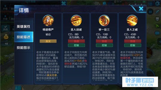二技能是一个不错的防御型技能,在前期打野的时候可以使用,来降低自己所承受的伤害,而且被动技能的概率发动两次普通攻击也让老夫子打野更加高效率。高额的减速让老夫子在GANK时候有不错的表现,同时降低伤害的防御属性让老夫子在团战中有更强的生存能力。