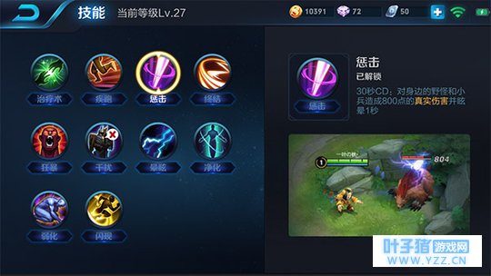 老夫子的召唤师技能选择惩击。惩击可以让老夫子在打野上更具效率,尤其是前期老夫子打野还是没有太大的优势,很容易被机动性强的英雄反野。惩击可以最大程度避免被抢野事件发生。惩击在打野装成型之后可以升级为寒冰惩击,在前期有不错的伤害,而且还有减速功效。
