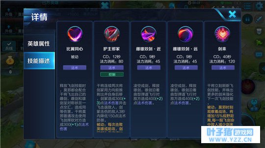 与二技能几乎一样,不同的是两把飞剑交汇点距离较远,二、三技能是干将莫邪的主力输出技能,无论是消耗、推线还是爆发都是依靠二、三技能,目前因为技能改动后上手简单,命中率高了很多,实战中威力比以前要更大。