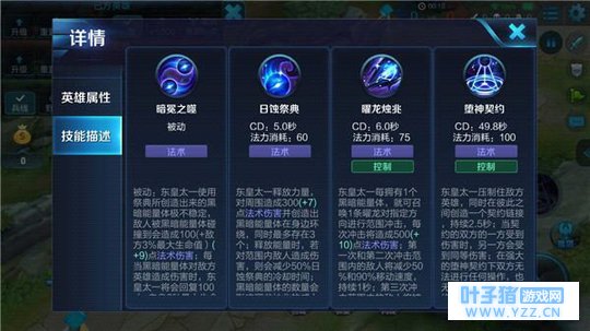 噬灭日蚀东皇太一,在众多的坦克英雄中,其综合实力或许不如项羽,廉颇之类的老牌坦克英雄,但若论控制能力以及续航能力,东皇太一绝对是所有坦克英雄中佼佼者。凭借其独特的技能机制,东皇太一天生便克制所有的近战类英雄,尤其是在游戏的前中期,敌方近战类英雄装备未成型之前,东皇太一具有压倒性的优势。同时其独特的支配能力,伤害共享的效果是所有输出型英雄克星,不论己方处于何种境地,在一场团战中东皇太一依然可以实行以次换佳的战术,用辅助的生命换取敌方输出英雄的性命,这绝对是值得的。下面便进入东皇太一的教学时间。