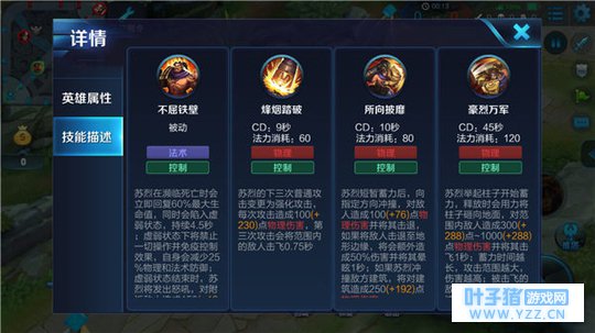 解析:一技能让苏烈的三次普通攻击附带很高的额外伤害,使之可与前期购买输出装备的射手相媲美,这也是苏烈能够以防御装备对敌方后排造成威胁的重要原因之一。