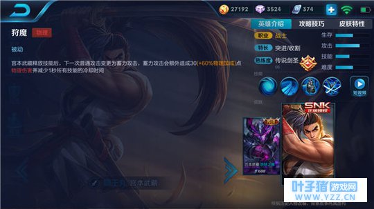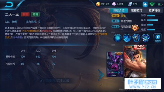 宫本武藏的技能总体还是偏向于对单体目标的打击,在打团时略有不足,因此在实战中一定要时刻的针对敌军后排英雄,保证能以最低的成本拿下对战的胜利!