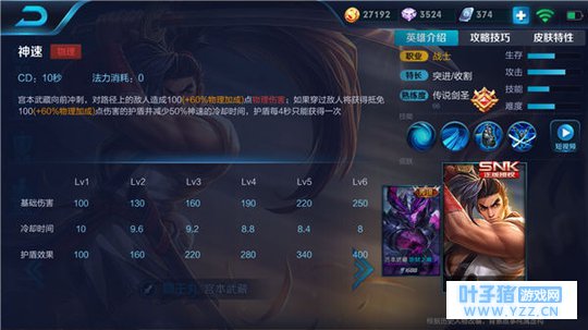 解析:关键的增益技能,在命中或穿越单位后可以为他增加护盾,并且返还一半的冷却时间,让他也具备很强的灵活性。
