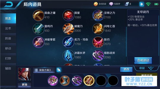 总结:这套出装能够让韩信可以带节奏入侵敌方野区,抓人和团战时切敌方的输出位都十分的无解。