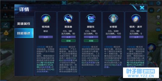杨玉环拨动琴弦提升自身50%的移动速度(随时间衰减),1.5秒后对600~800范围内的敌人造成法术伤害并将其晕眩,持续一段时间。