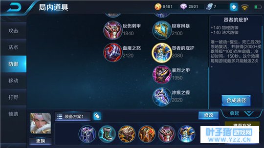 出装推荐:魔女斗篷+抵抗之靴+不祥征兆+红莲斗篷+反伤刺甲+贤者的庇护