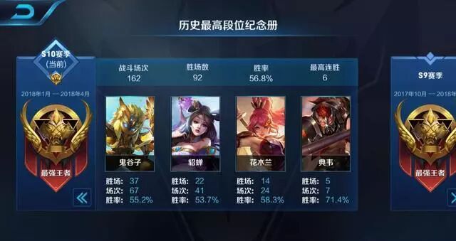 王者荣耀这款游戏已经走过了S10赛季,这个赛季开赛以来,在找不到眉目,看不清方向的徘徊期,在春节节日事务多的不利情况下,迅速转变思路,一路发力强势登上王者之列,156局,这样的成绩是自己万万没有想到的,有惊喜有意外有运气,但更多的是欣慰和对自我的肯定,抛开主观,抛开外界因素,说句不自夸的话,18天上王者是我们这个水平层次偶然中存在的必然结果,大家可能不服不忿,我就通过这篇心得解读上分路。