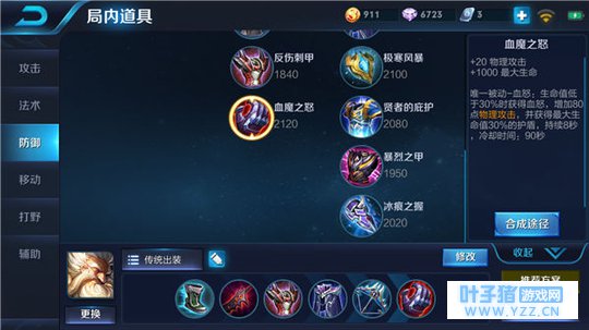 出装:抵抗之靴+末世+反伤刺甲+魔女斗篷+破甲弓+血魔之怒