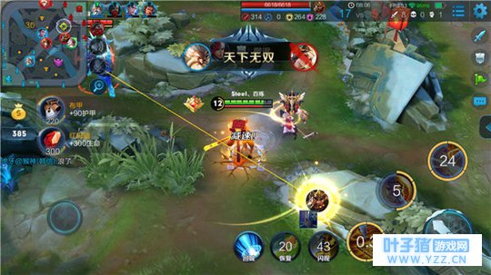 前期我们利用一技能在塔下补兵。敌人想要向前靠近点塔,我们就利用一技能将敌人拉下塔内,这样敌人就会被防御塔攻击,能很好的消耗对手血量,如果我方打野过来gank,可以配合打野完成击杀。